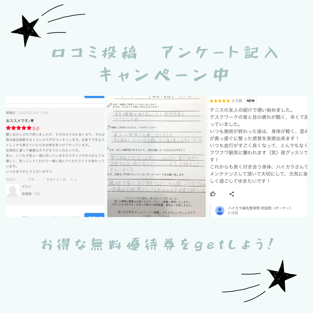 お知らせ・ブログ|阪急吹田駅・徒歩7分のハイカラ鍼灸整骨院 吹田院