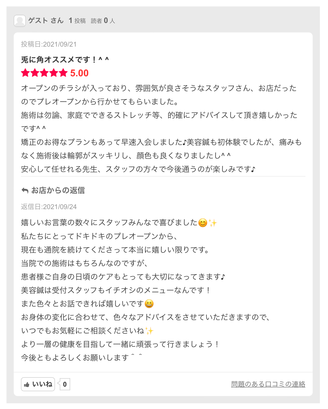 - 設備・サービスのお知らせ,お客様の施術例