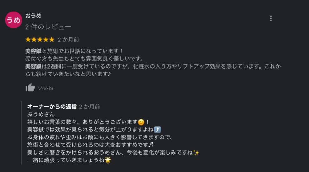 美容鍼を受けられたお客様からのお声