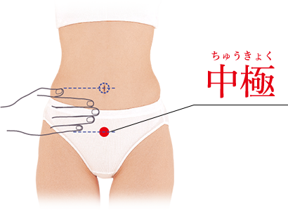 もう一つは中極というツボです。こちらおへその中央から指5本分の下の凹んだ所に取ります。この中極も女性疾患に強いツボになります。ツボには針を使って施術していきます!!